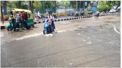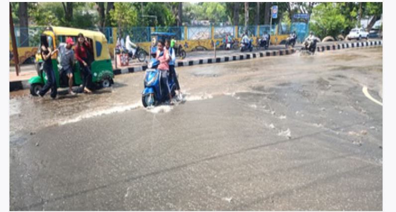 भोपाल में लोक भवन के सामने सड़क धंसी, पानी बहने...