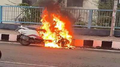 चेतक ब्रिज पर दौड़ती टू-व्हीलर में लगी आग, 15 मिनट में गाड़ी जलकर हुई खाक