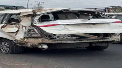 तेज रफ्तार कार की टक्कर से ट्रैक्टर तीन टुकड़ों में बंटा, चालक गंभीर घायल