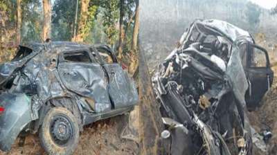 सड़क हादसा: तेज रफ्तार कार अनियंत्रित होकर 25 फीट नीचे खाई गिरी, दो की मौत