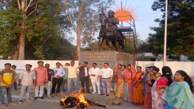 विदिशा/इंदौर: समाजवादी पार्टी के राज्यसभा सांसद रामजीलाल सुमन के महाराणा सांगा पर दिए गए विवादित बयान को लेकर राजपूत समाज में जबरदस्त आक्रोश देखने को मिल रहा है. इसको लेकर देशभर में कई जगह विरोध प्रदर्शन किए जा रहे हैं. बुधवार को विदिशा में क्षत्रिय करणी सेना ने महाराणा प्रताप चौराहे पर प्रदर्शन किया और सांसद का पुतला जलाकर अपना विरोध दर्ज कराया. वहीं, इंदौर में पुतले को गोमूत्र पिलाकर उनकी चप्पलों से पिटाई की गई और जमकर नारेबाजी भी की गई.