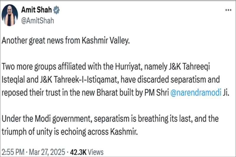 हुर्रियत से जुड़े दो और समूहों हुए अलग, जम्मू-कश्मीर मुद्दे पर बोले अमित शाह