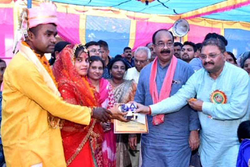 उप मुख्यमंत्री अरुण साव ने सामूहिक विवाह समारोह को संबोधित करते हुए कहा कि मुख्यमंत्री सामूहिक कन्या विवाह योजना के अंतर्गत यहां 20 जोड़ों का विवाह हो रहा है, 40 परिवारों में खुशियां आ रही हैं। आज का दिन ऐतिहासिक है, सामूहिक विवाह के साथ ही एक करोड़ 49 लाख रुपए से अधिक के विकास कार्यों का भूमिपूजन किया गया है। उन्होंने कहा कि मुख्यमंत्री विष्णु देव साय के नेतृत्व में सरकार हर व्यक्ति के विकास के लिए कार्य कर रही है। राज्य और केंद्र सरकार हर परिवार के आवास और इलाज की व्यवस्था के साथ ही सामूहिक विवाह कार्यक्रमों के माध्यम से बेटे-बेटियों के विवाह की चिंता भी दूर कर रही है। छत्तीसगढ़ में विष्णु का सुशासन कल्याणकारी है।