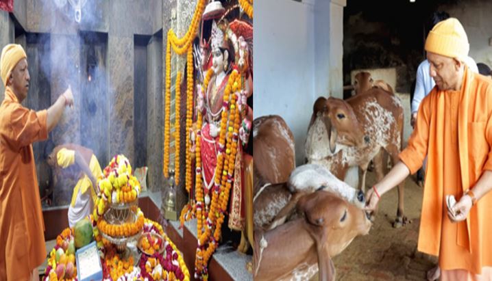 मुख्यमंत्री योगी जब भी मां पाटेश्वरी मंदिर में आते हैं तो गोसेवा भी करते हैं।