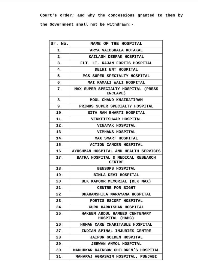 दिल्ली में कई निजी अस्पतालों को सरकारी जमीन बहुत कम कीमत (concessional rate) पर दी गई थी।