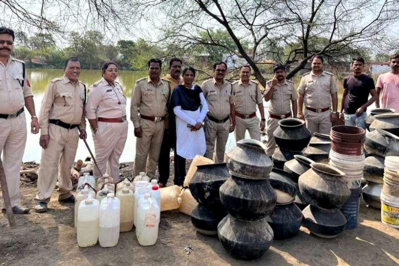 34 हजार रुपए कीमत की अवैध कच्ची शराब व महुआ लाहन जब्त