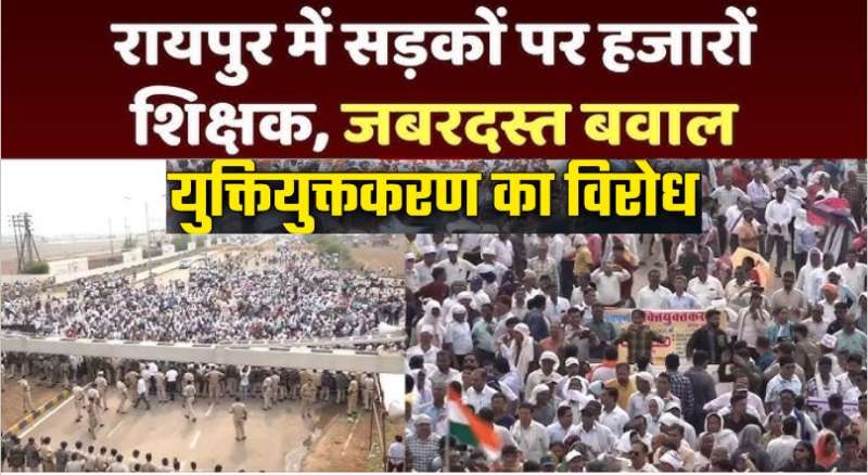 छत्तीसगढ़ सरकार द्वारा लिए गए युक्तियुक्तकरण के फैसले के खिलाफ शिक्षक संगठनों ने मोर्चा खोल दिया। सर्व शिक्षक साझा मंच के बैनर तले राज्य के 23 शैक्षिक संगठनों ने बुधवार को जोरदार प्रदर्शन करते हुए मंत्रालय घेराव के लिए निकले।राजधानी रायपुर के तूता गांव में हजारों की संख्या में एकत्रित शिक्षकों ने सरकार के फैसले को जनविरोधी बताते हुए आंदोलन की शुरुआत की।