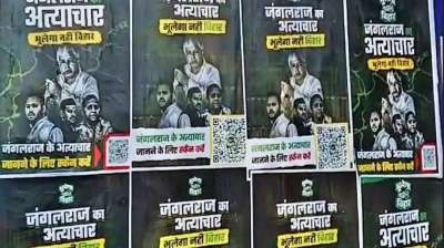 पटना में राजद के खिलाफ लगे पोस्टर, लालू के जंगलराज को दिखाया गया